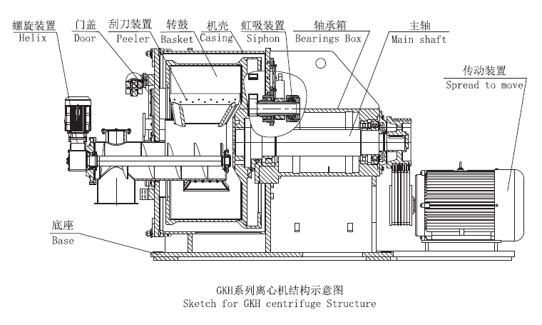 主電機(jī)帶動(dòng)套裝的內(nèi)外轉(zhuǎn)鼓全速旋轉(zhuǎn),物料由進(jìn)料管引入轉(zhuǎn)鼓,在離心力作用下,液相物穿過(guò)濾布和內(nèi)轉(zhuǎn)鼓壁濾孔排出內(nèi)轉(zhuǎn)鼓,匯集到內(nèi)外轉(zhuǎn)鼓間的間隙內(nèi),穿過(guò)到虹吸室的通孔進(jìn)入虹吸室,再由虹吸裝置抽走排出機(jī)外。固相物截留在內(nèi)轉(zhuǎn)鼓形成環(huán)形濾餅層。進(jìn)料達(dá)到預(yù)定容積后停止進(jìn)料,進(jìn)一步分離,此時(shí)可進(jìn)行洗滌。洗滌、分離結(jié)束,刮刀自動(dòng)旋轉(zhuǎn),將固相物刮下經(jīng)輸料螺旋排出機(jī)外,然后自動(dòng)洗網(wǎng),開(kāi)始下一個(gè)循環(huán)。
